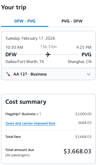 Sample Savings: Dallas to Shanghai goes for $3,668 round-trip. Compared to the regular published fares of about $4,000 to $5,000.