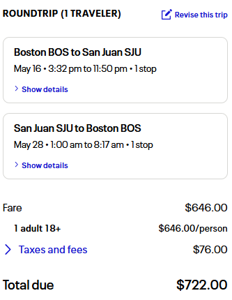 Sample Savings: Boston to San Juan goes for $722 round-trip. Compared to regular published fares of about $1,000 to $2,000.