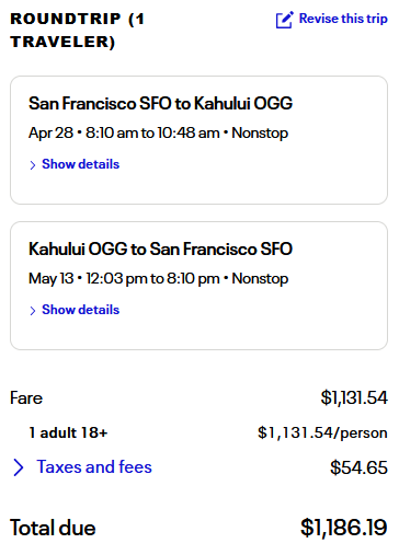 Sample Savings: San Francisco to Maui goes for $1,186 round-trip. Compared to the regular published fares of about $1,500 to $3,000.