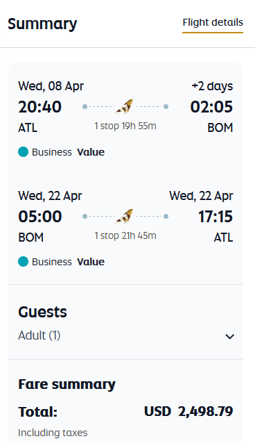 Sample Savings: Atlanta to Mumbai goes for $2,498 round-trip. Compared to regular published fares of about $4,000 to $5,000.