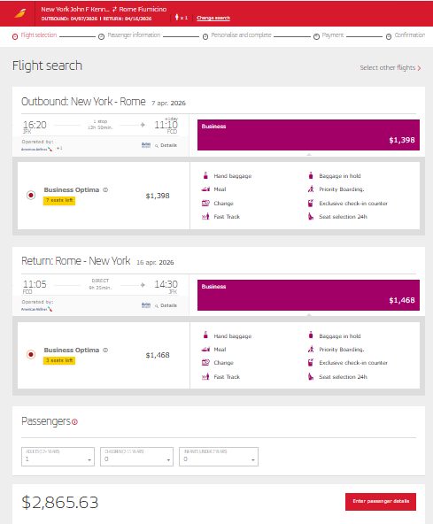 Sample Savings: New York to Rome goes for $2,865 round-trip. Compared to regular published fares of about $3,200 to $5,000.
