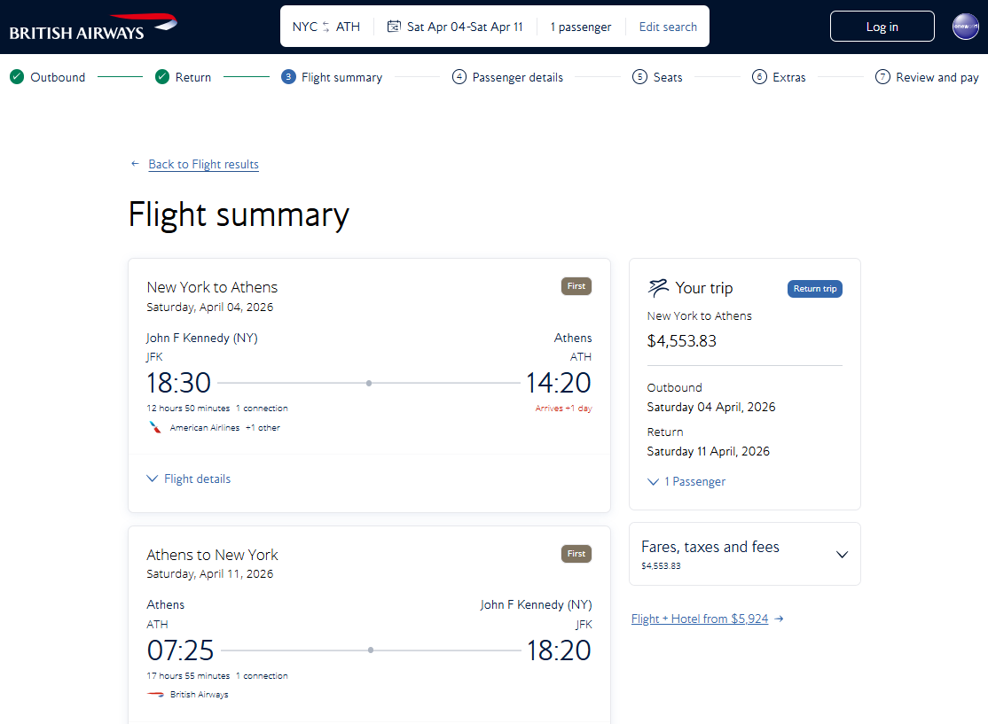 You can save on average an additional $140 to $430 on BA flights with the AARP Member Discount (anyone of any age can join for $12) and British Airways Visa Card discount (current promo code is BACHASE10).