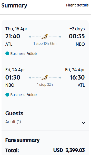 Sample Savings: New York to Nairobi goes for $3,550 round-trip. Compared to the regular published fares of about $4,000 to $5,000.