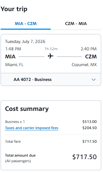 Sample Savings: Miami to Cozumel goes for $717 round-trip. Compared to regular published fares of about $1,000 to $2,600.