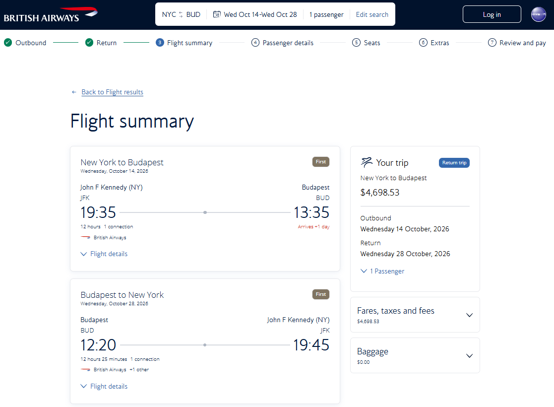 Sample Savings: New York to Budapest goes for $4,698 round-trip. Compared to regular published fares of about $4,500 to $6,000.