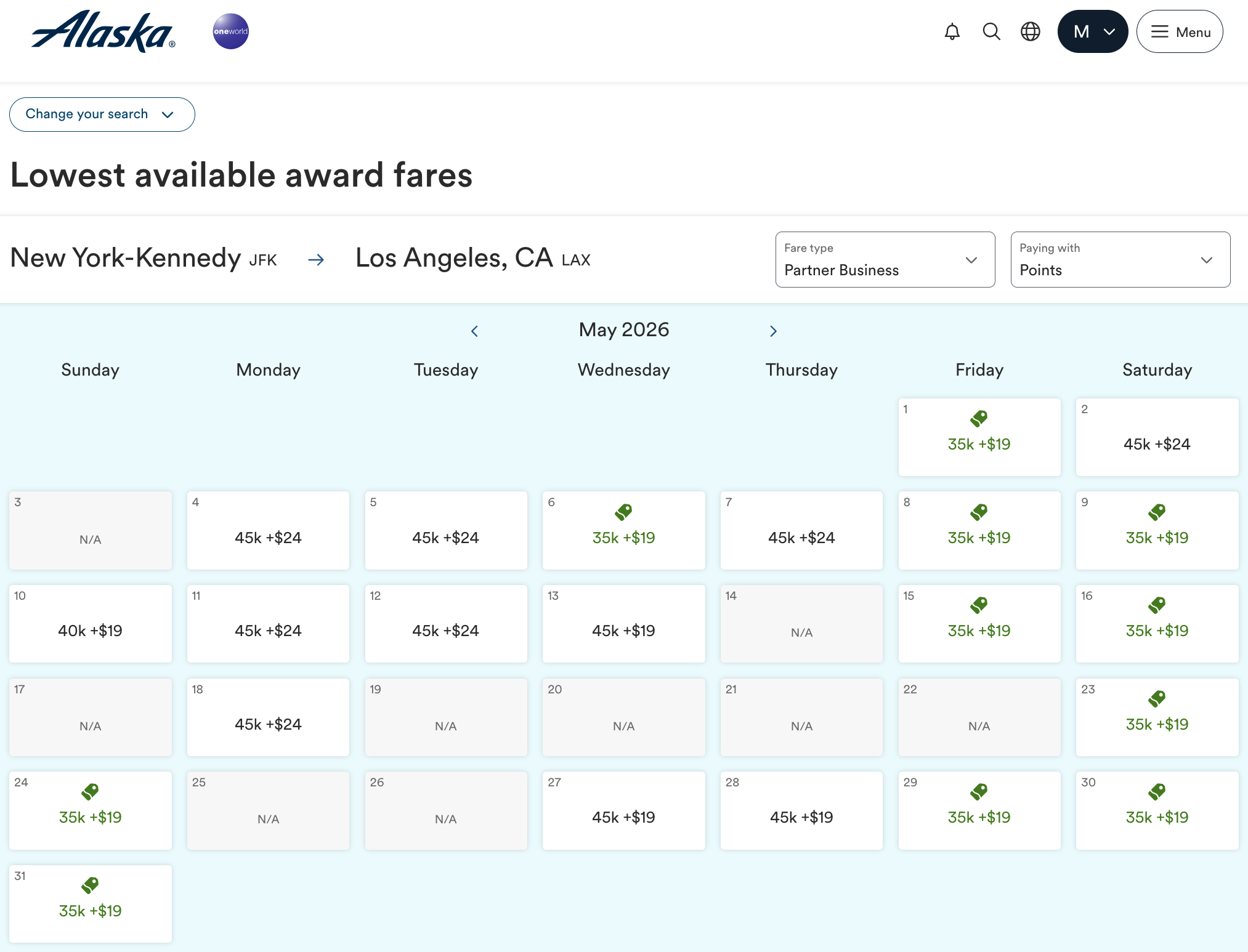 Good Transcon Availability on American Airlines Now With Alaska Miles - Save 50%+