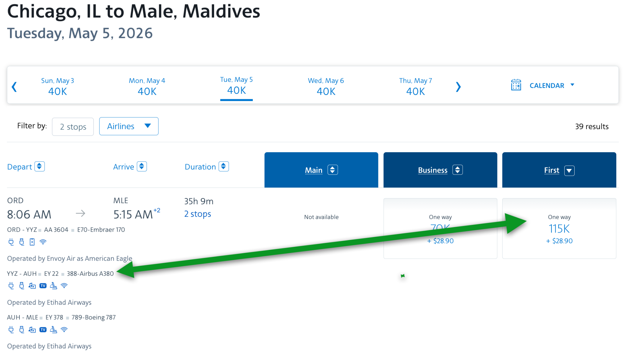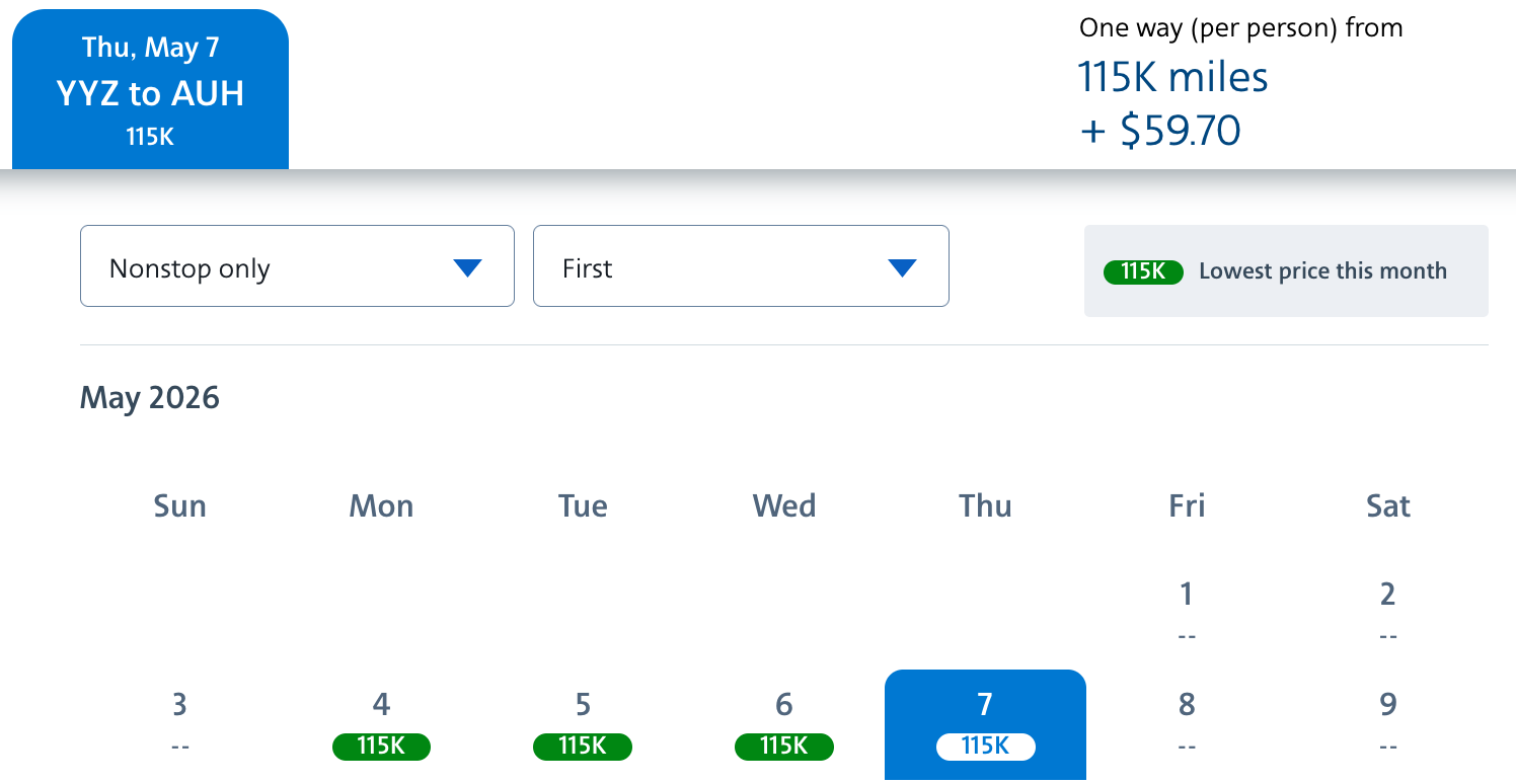 More importantly – this opportunity goes far beyond Abu Dhabi. The same 115,000 miles get you to destinations like Delhi, Mumbai, Kathmandu, the Maldives, Seychelles, Zanzibar, and many others.