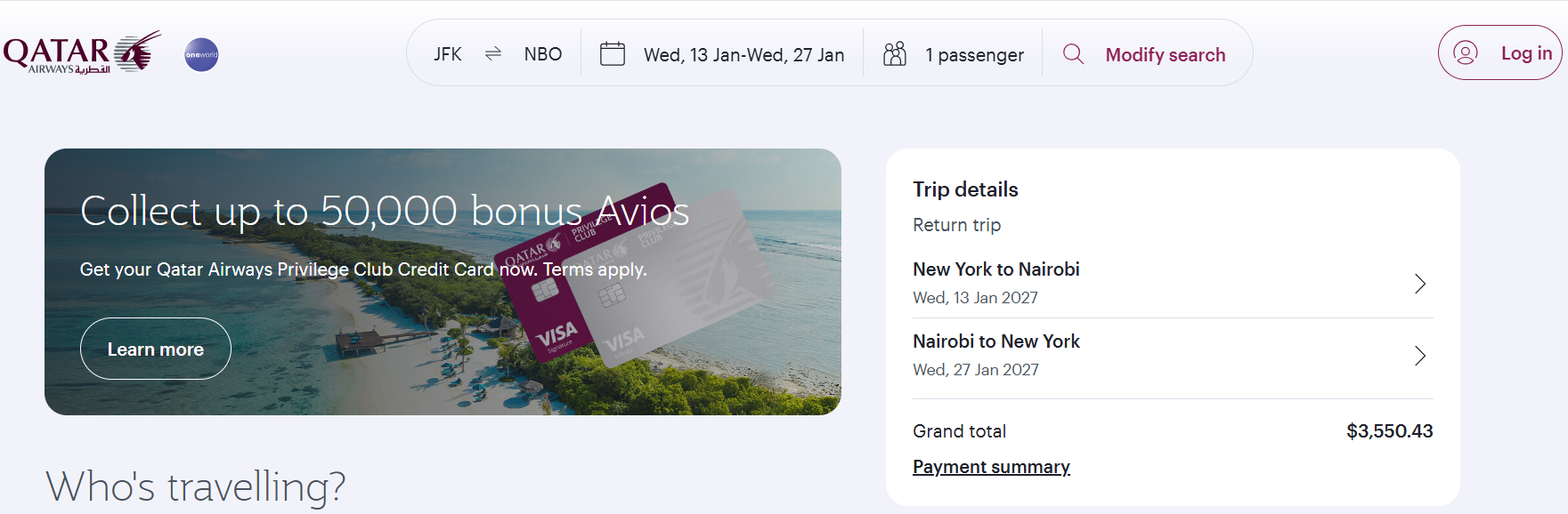 Sample Savings: New York to Nairobi goes for $3,550 round-trip. Compared to the regular published fares of about $4,000 to $5,000.