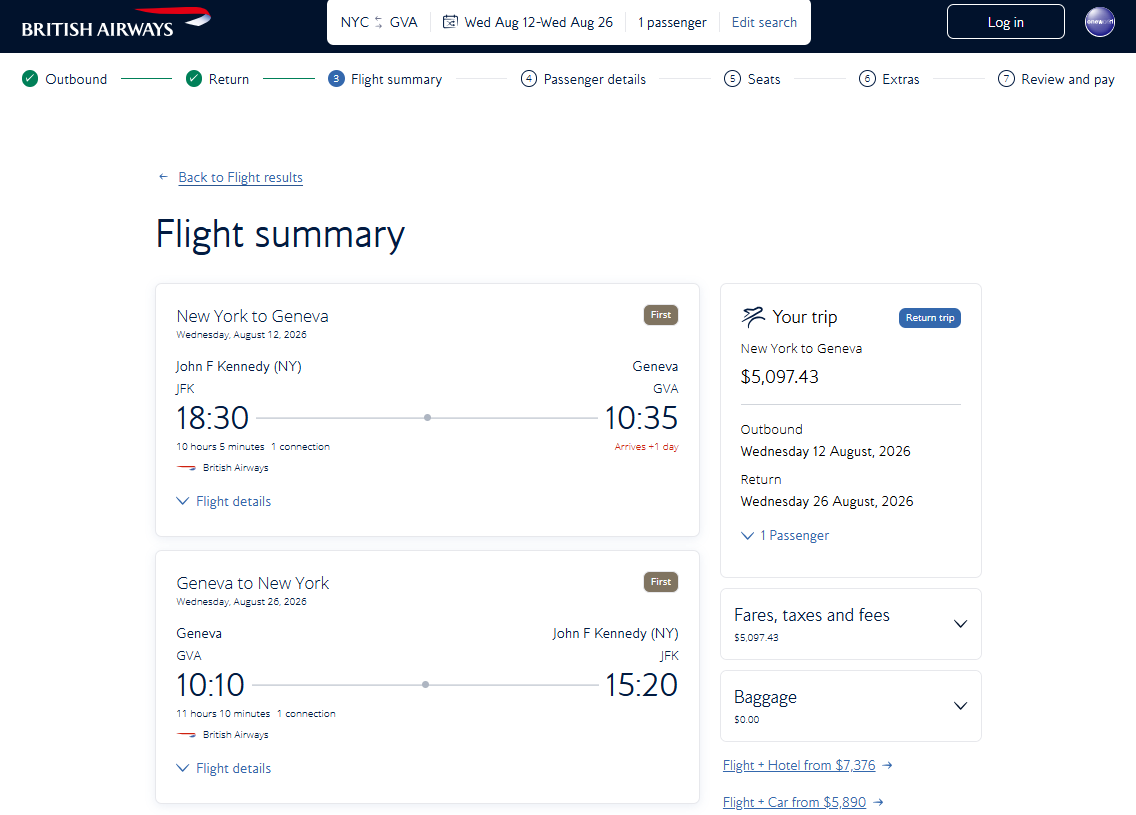 You can save on average an additional $140 to $430 on BA flights with the AARP Member Discount (anyone of any age can join for $12) and British Airways Visa Card discount (current promo code is BACHASE10).