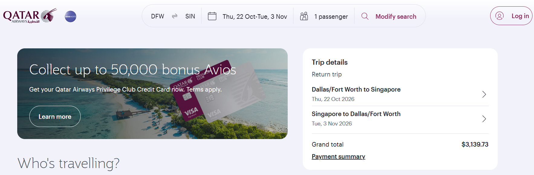 Sample Savings: Dallas to Singapore goes for $3,139 round-trip. Compared to regular published fares of about $4,000 to $5,000.
