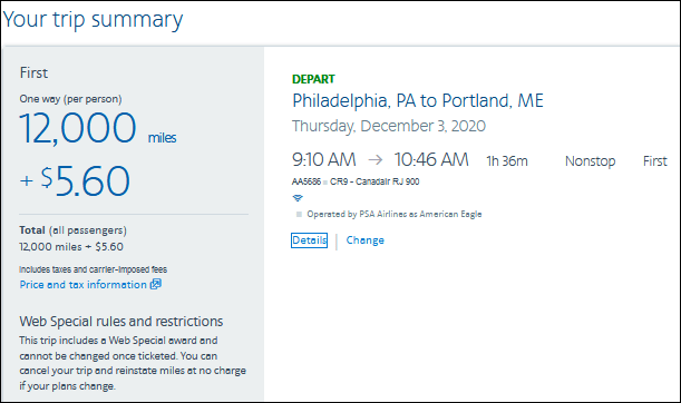 You do have to do some homework for these because many short-haul First Class flights aren’t very expensive to begin with. For example, I noticed one recently on a flight from Philadelphia to Portland, Maine, on a published fare of about $750 round-trip, while the miles award ticket priced at 24,000 for the hour-and-a-half flight.
