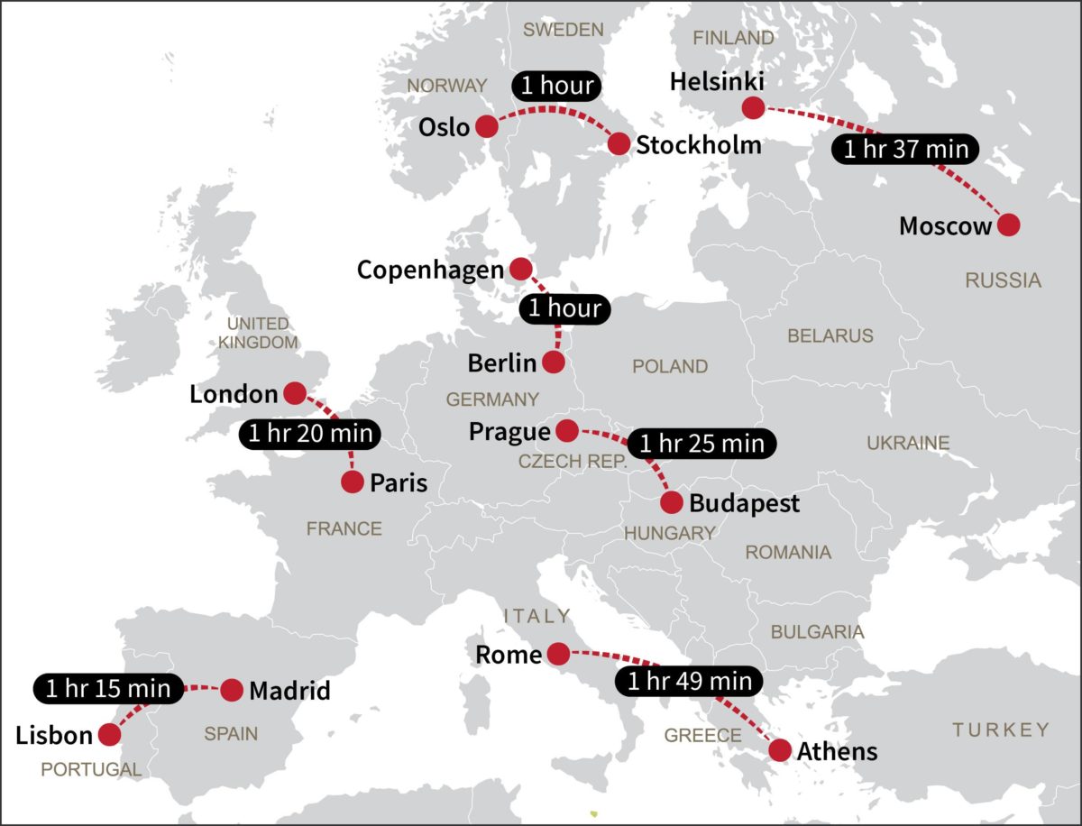 - Stockholm and Oslo are the same flight time apart as Los Angeles and San Diego.