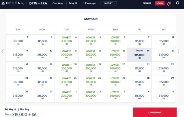 - Only one route, Detroit to Frankfurt, had a handful of days with award space in the month of May for four travelers, in both directions.