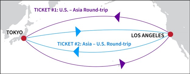 However, you’re fine if you book multiple trips on different airlines. So… consider booking one round-trip starting in the U.S. with airline alliance A airline (perhaps SkyTeam), and another round-trip starting in Asia from alliance B airline (perhaps Star Alliance).