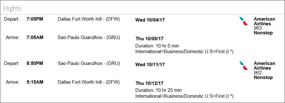 Example: Dallas-Sao Paulo: The American Vacations six-night package costs $4,531 per person, which includes accommodations at the Grand Hyatt Sao Paulo. Booking the flight separately would cost $4,979.