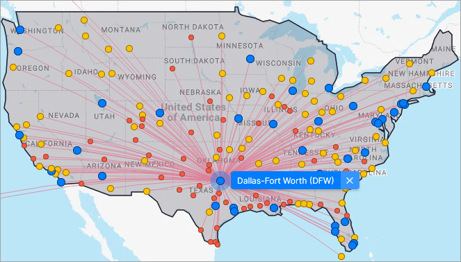 American Airlines Routes to/from Dallas Screenshot from FlightConnections.com