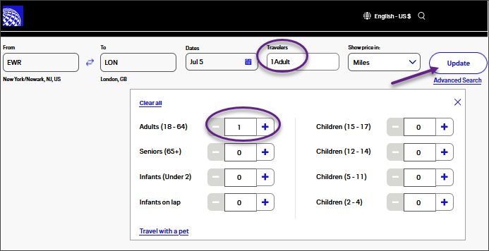 We did a menu update and changed it back to one traveler to try and get that same 80,000 miles seat United offered first.
